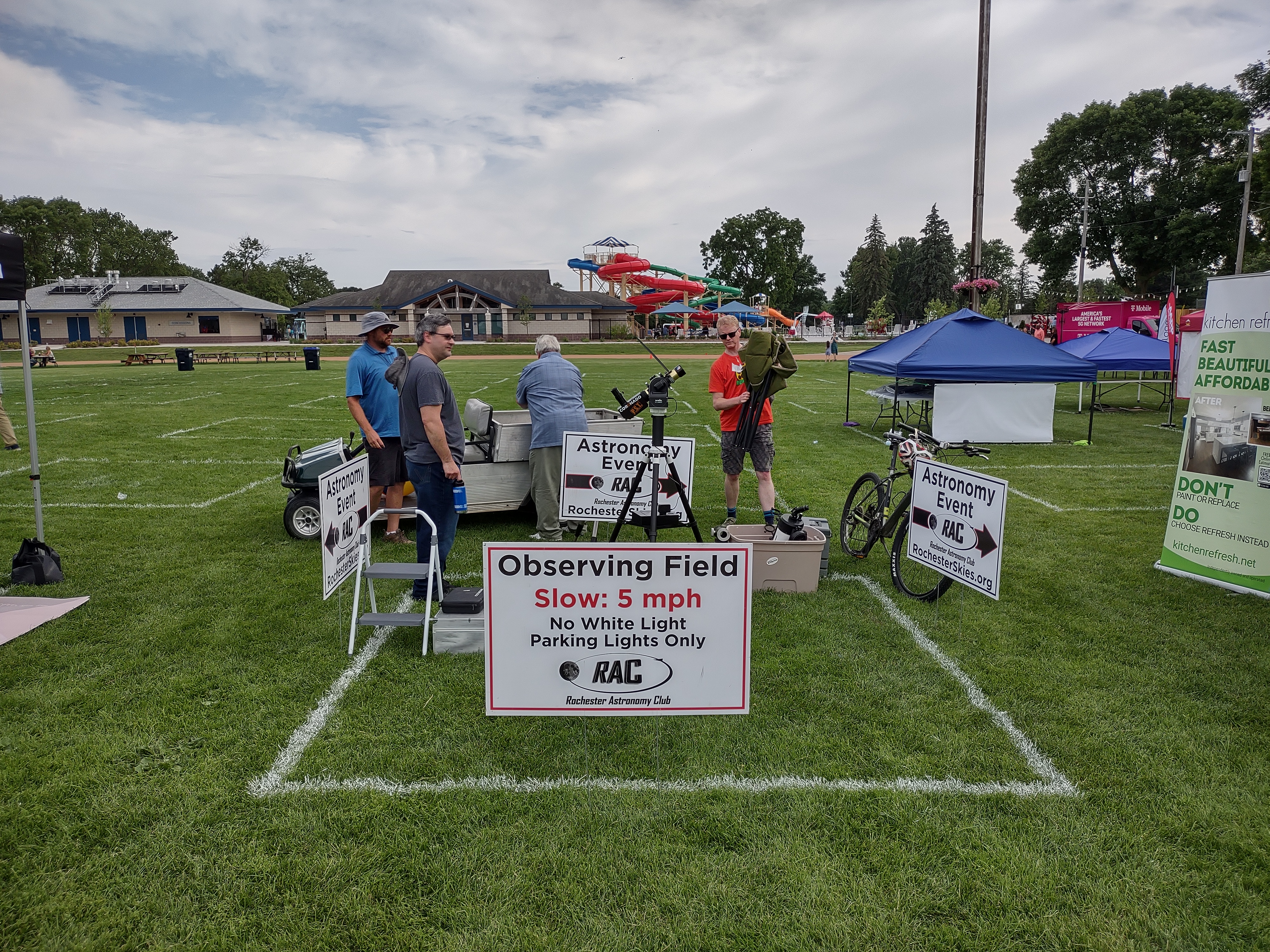 Tuesday 6/24 we planned a public observation of the Sun at RochesterFest from 5 to 7 p.m. Actually, 2025 was the first year that RAC participated in RochesterFest. We were pleasantly surprised by the organizers, who provided transportation for our telescopes and other equipment. All we had to do was ask, and they were happy to transport everything we needed in electric golf carts.